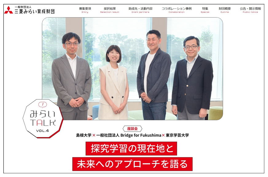 三菱みらい育成財団のホームページにて、2024年度の活動報告動画が紹介されました。