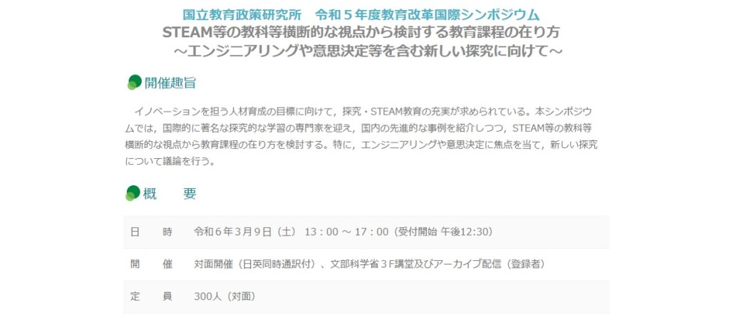 「国立教育政策研究所 令和5年度教育改革国際シンポジウム」のご案内です。