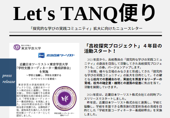 「高校探究プロジェクト」4年目の始動に際して、ニュースレターも装いを新たにしました。