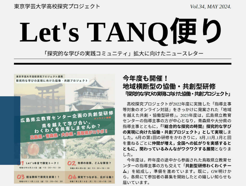 「高校探究プロジェクト」のニュースレター第34号を配信します!