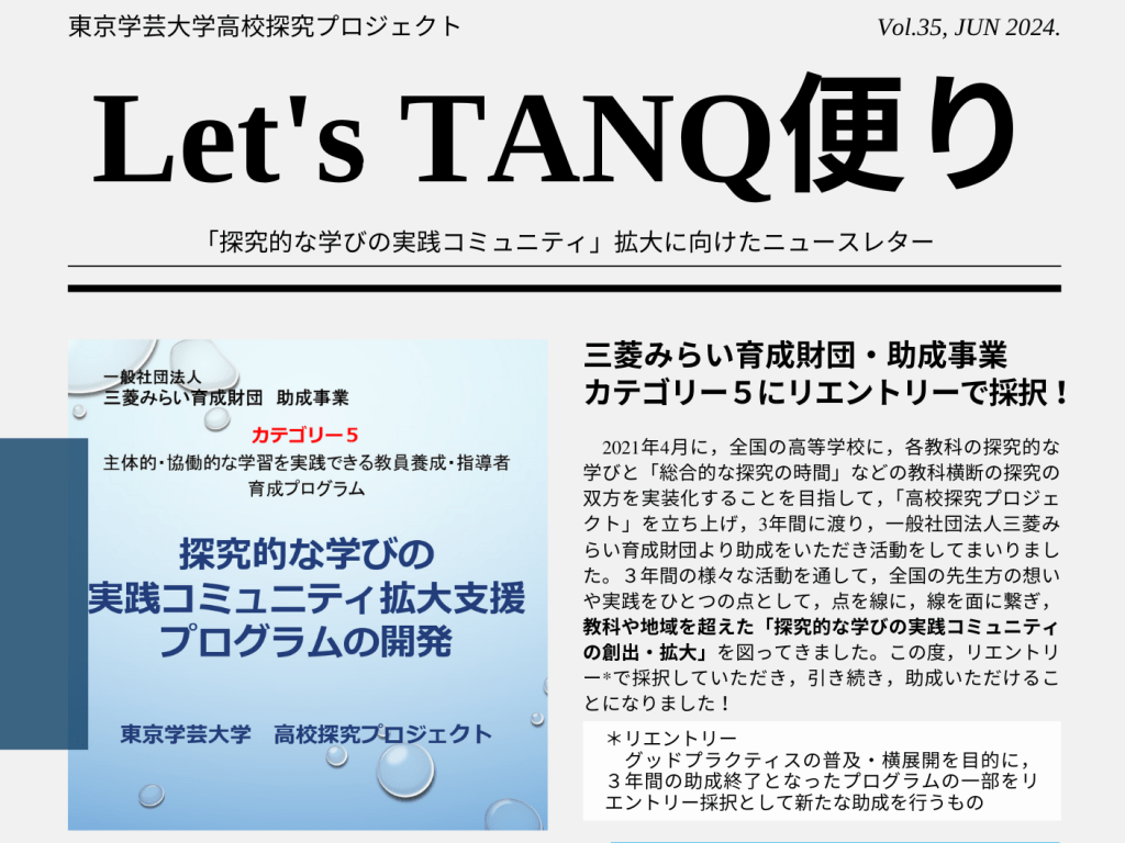 「高校探究プロジェクト」のニュースレター第35号を配信します!