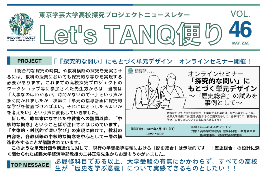 「高校探究プロジェクト」のニュースレター第46号を配信しました!