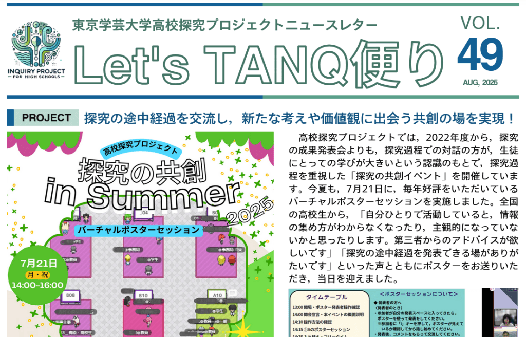 今号は、7月に実施しましたバーチャルポスターセッション「探究の共創 in Summer 2025」の開催報告です。