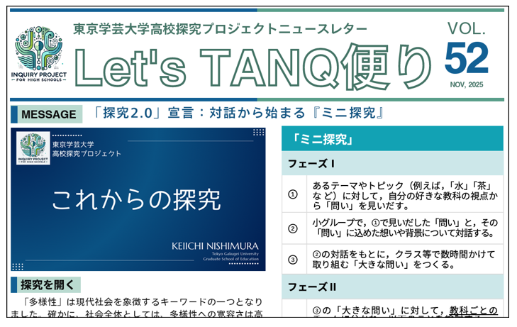 「高校探究プロジェクト」のニュースレター第52号を配信しました!