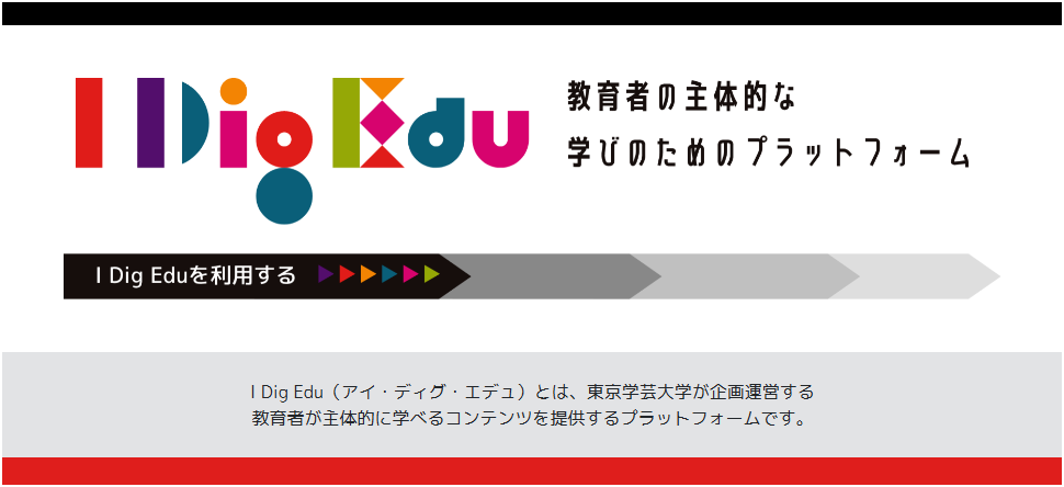 「I Dig Edu」とは、東京学芸大学が企画運営する、教育者が主体的に学べるコンテンツを提供するプラットフォームです。