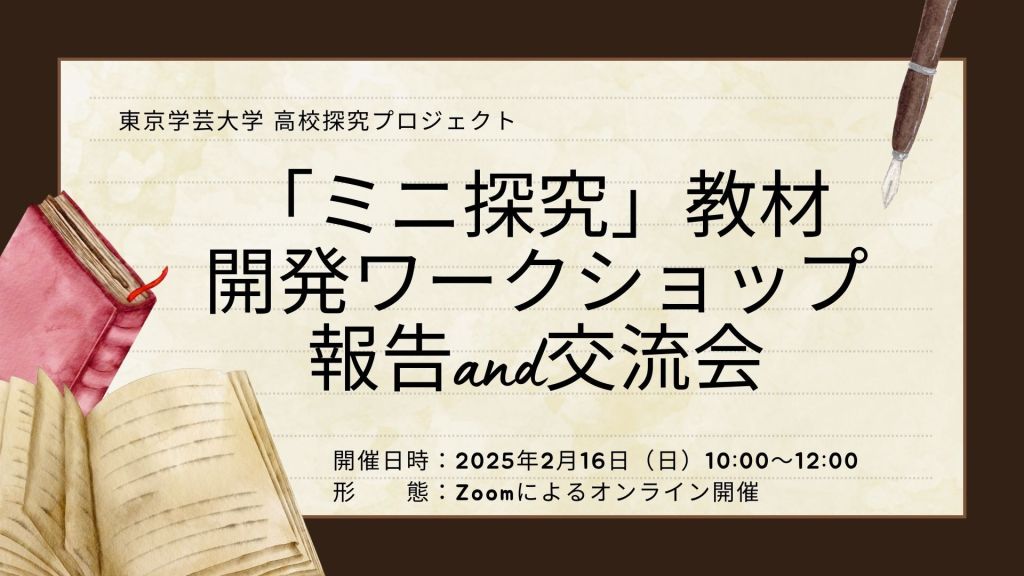 2024年度,継続的に「ミニ探究」教材開発ワークショップを開催する予定です。