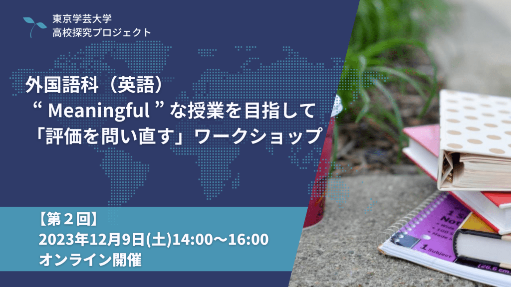 また、共有した目的をもとに、どのような評価が必要になるのか、学習評価についても考える機会にしたいと思っています。ぜひ、ご参加ください。
